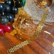 シンプルなゴールドの幅のあるパーツの大人なブレスレットです。