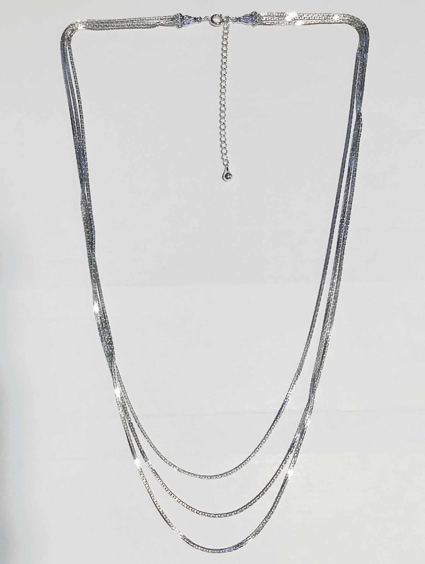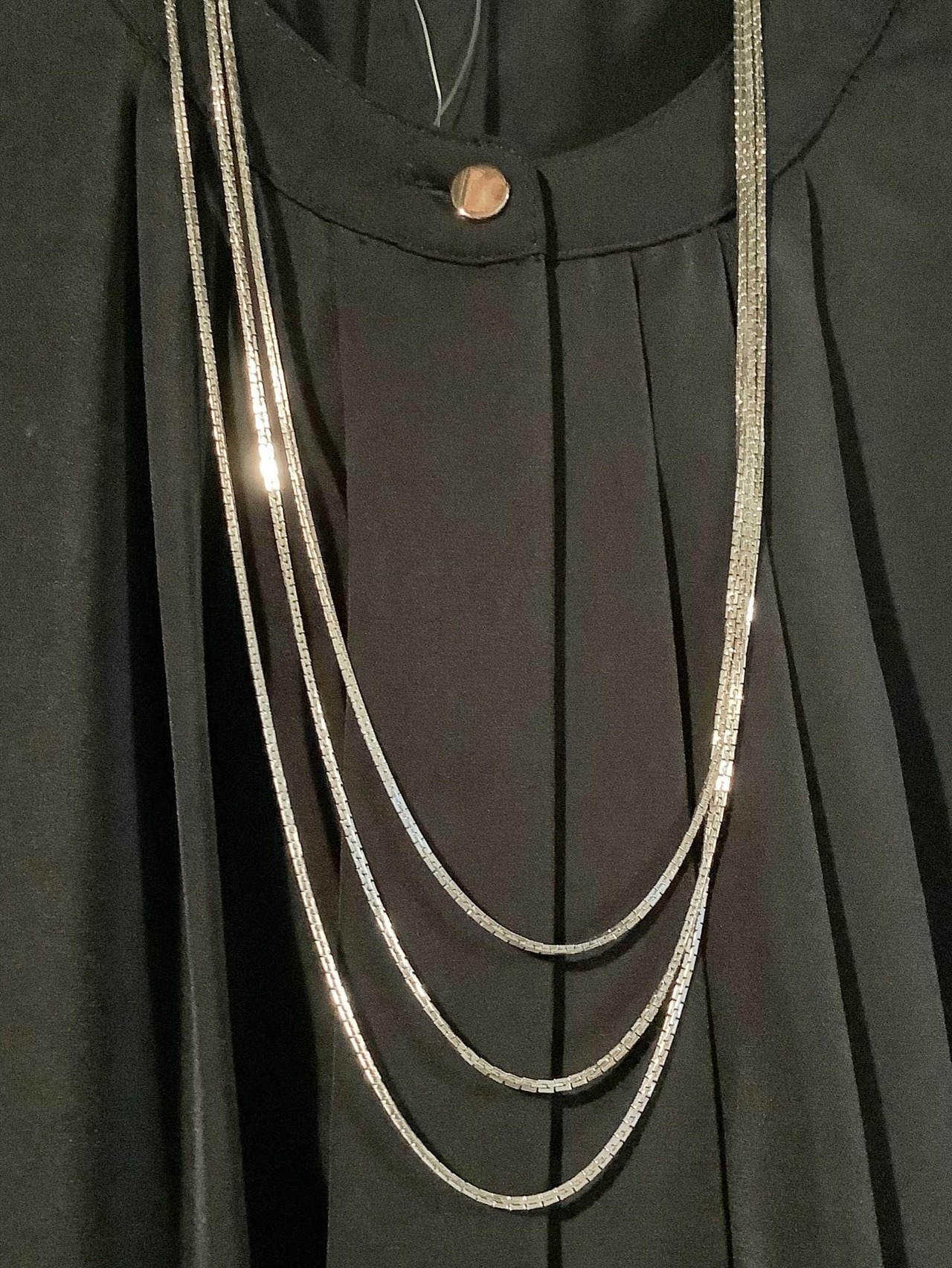 きらきらと光沢のあるチェーンを3本使用したデザインです。