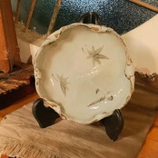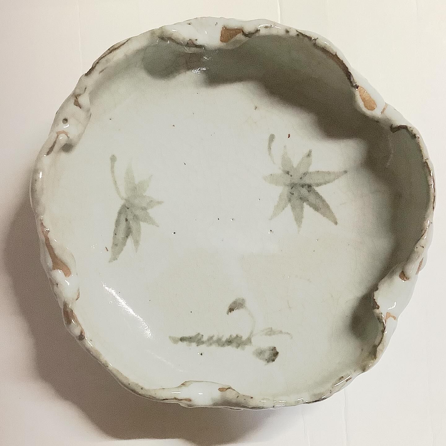 円形でもみじ柄の手作りのお皿です。