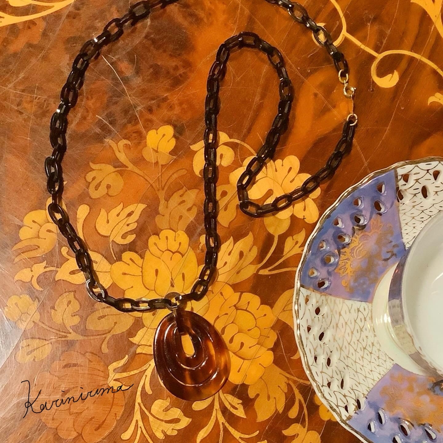 モチーフ、チェーン部分全てブラウン系のアクリル素材です。